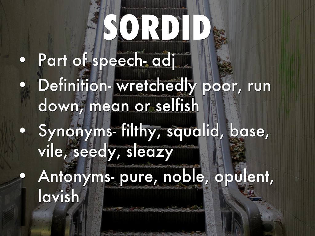 Synonyms- filthy, squalid, base, vile, seedy, sleazy
