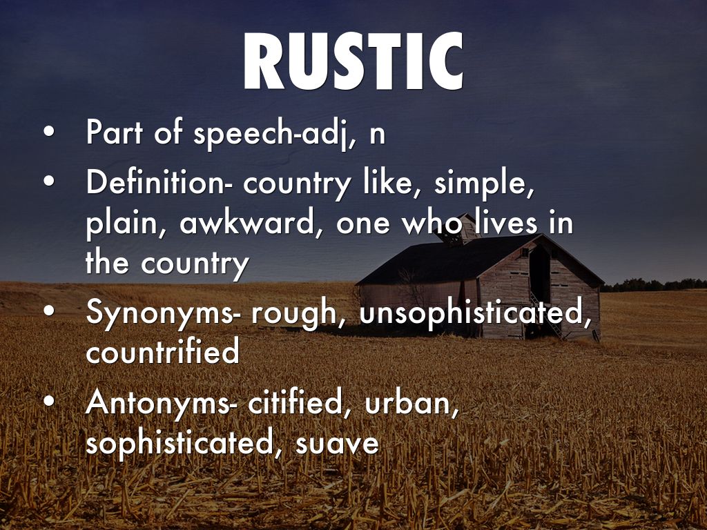Definition- country like, simple, plain, awkward, one who lives in the country