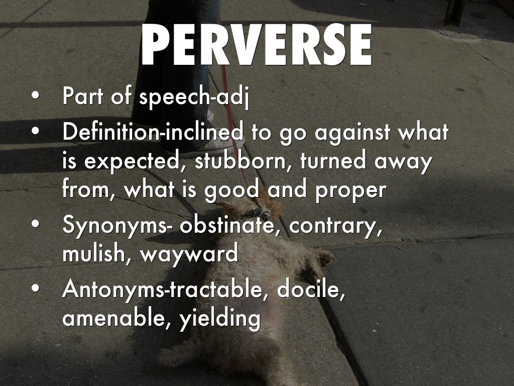 Definition-inclined to go against what is expected, stubborn, turned away from, what is good and proper