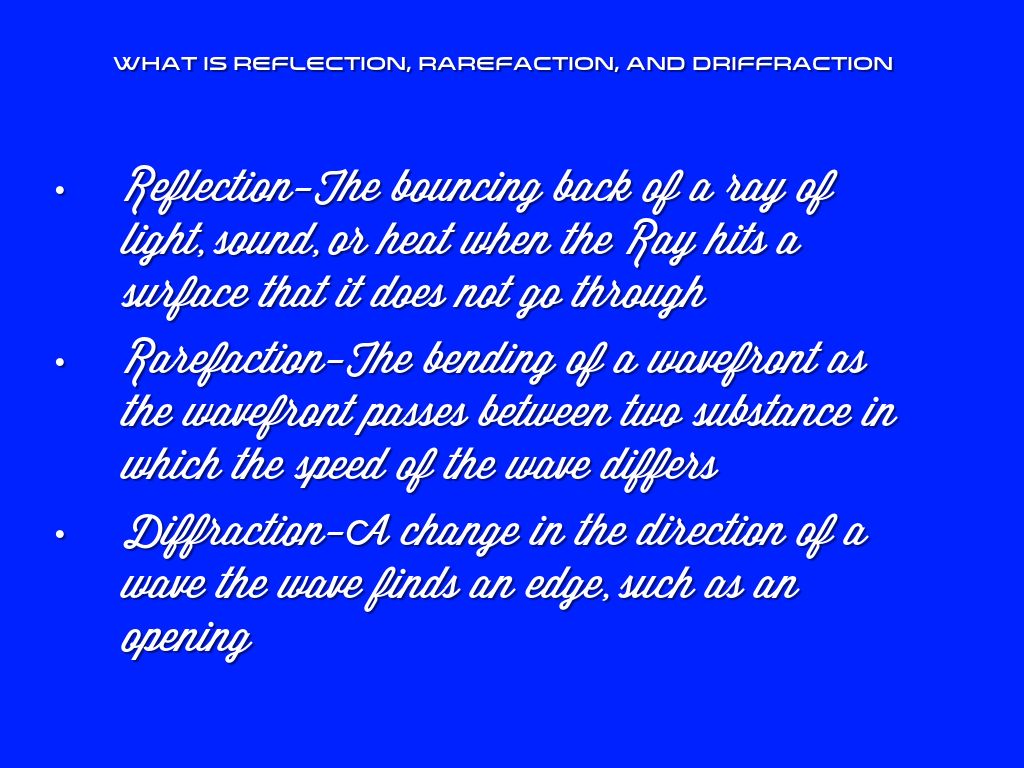 WHAT IS REFLECTION, RAREFACTION, AND DRIFFRACTION