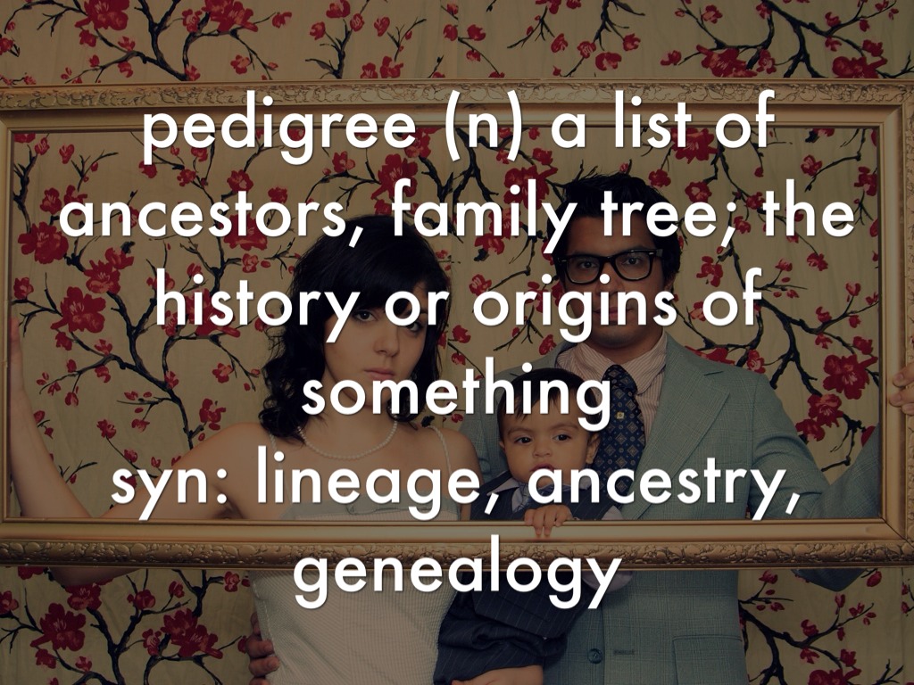 pedigree (n) a list of ancestors, family tree; the history or origins of something
