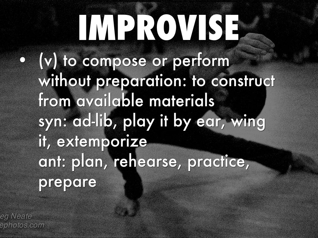 (v) to compose or perform without preparation: to construct from available materials
