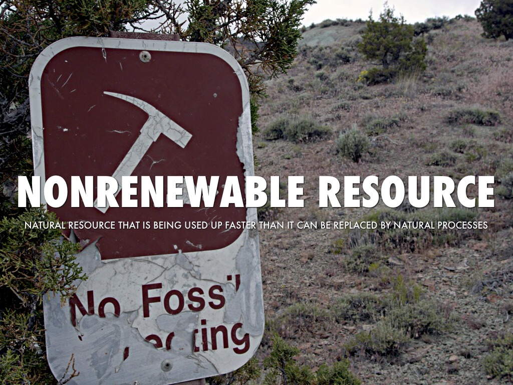 NATURAL RESOURCE THAT IS BEING USED UP FASTER THAN IT CAN BE REPLACED BY NATURAL PROCESSES