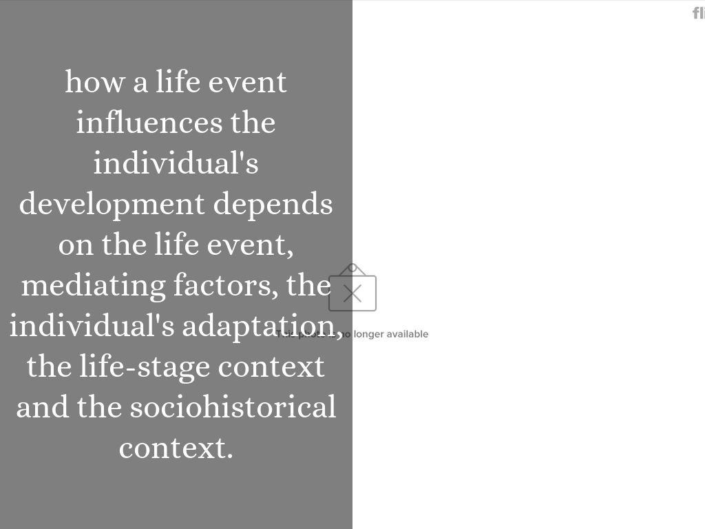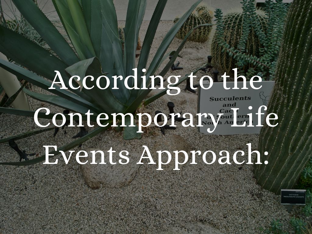 how a life event influences the individual's development depends on the life event, mediating factors, the individual's adaptation, the life-stage context and the sociohistorical context.