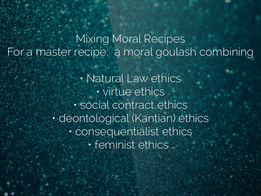 For a master recipe: a moral goulash combining