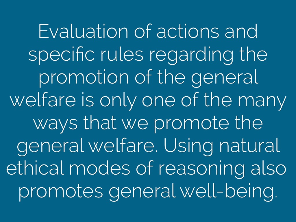 Evaluation of actions and specific rules regarding the promotion of the general welfare is only one of the many ways that we promote the general welfare. Using natural ethical modes of reasoning also promotes general well-being.