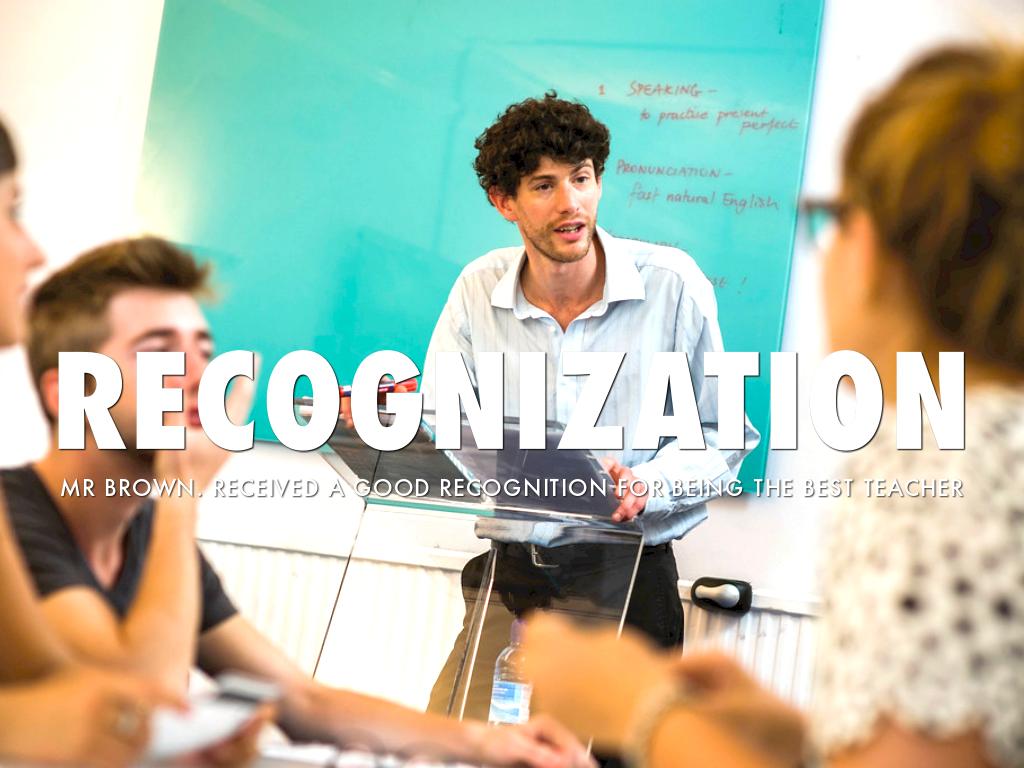 MR BROWN. RECEIVED A GOOD RECOGNITION FOR BEING THE BEST TEACHER