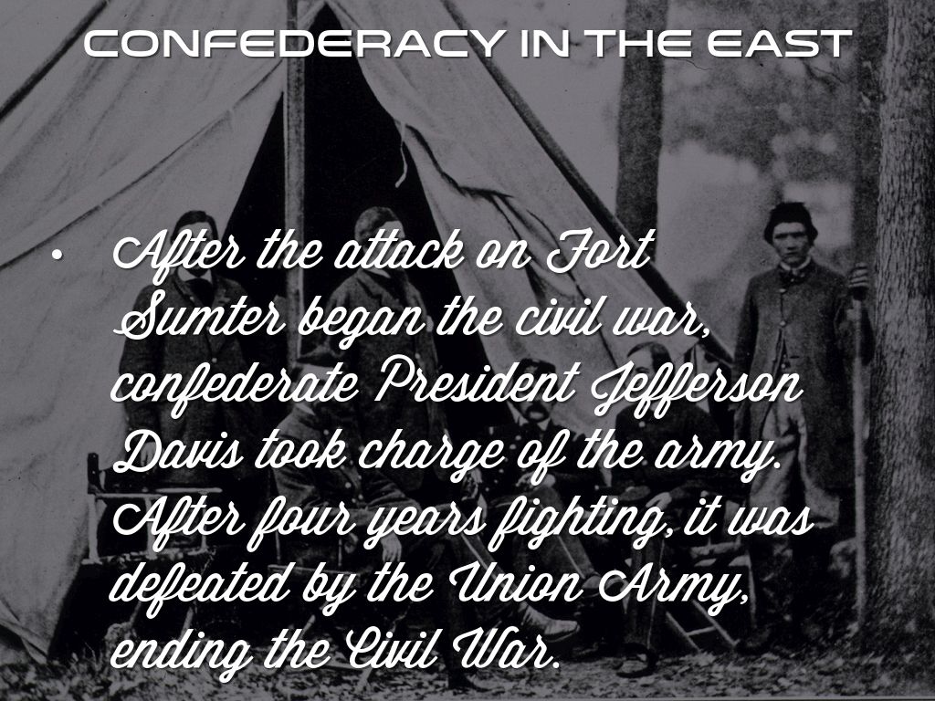 After the attack on Fort Sumter began the civil war, confederate President Jefferson Davis took charge of the army. After four years fighting, it was defeated by the Union Army, ending the Civil War.