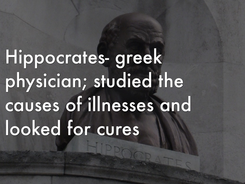 Hippocrates- greek physician; studied the causes of illnesses and looked for cures