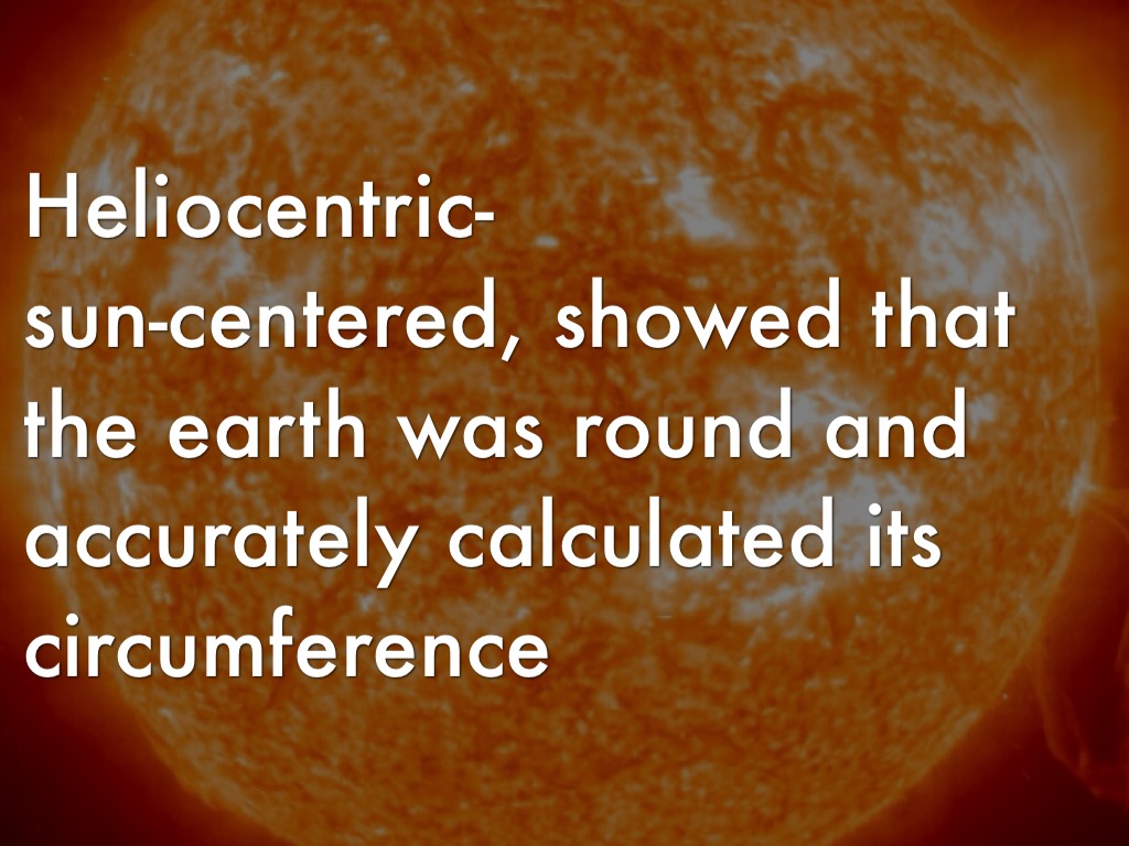 sun-centered, showed that the earth was round and accurately calculated its circumference