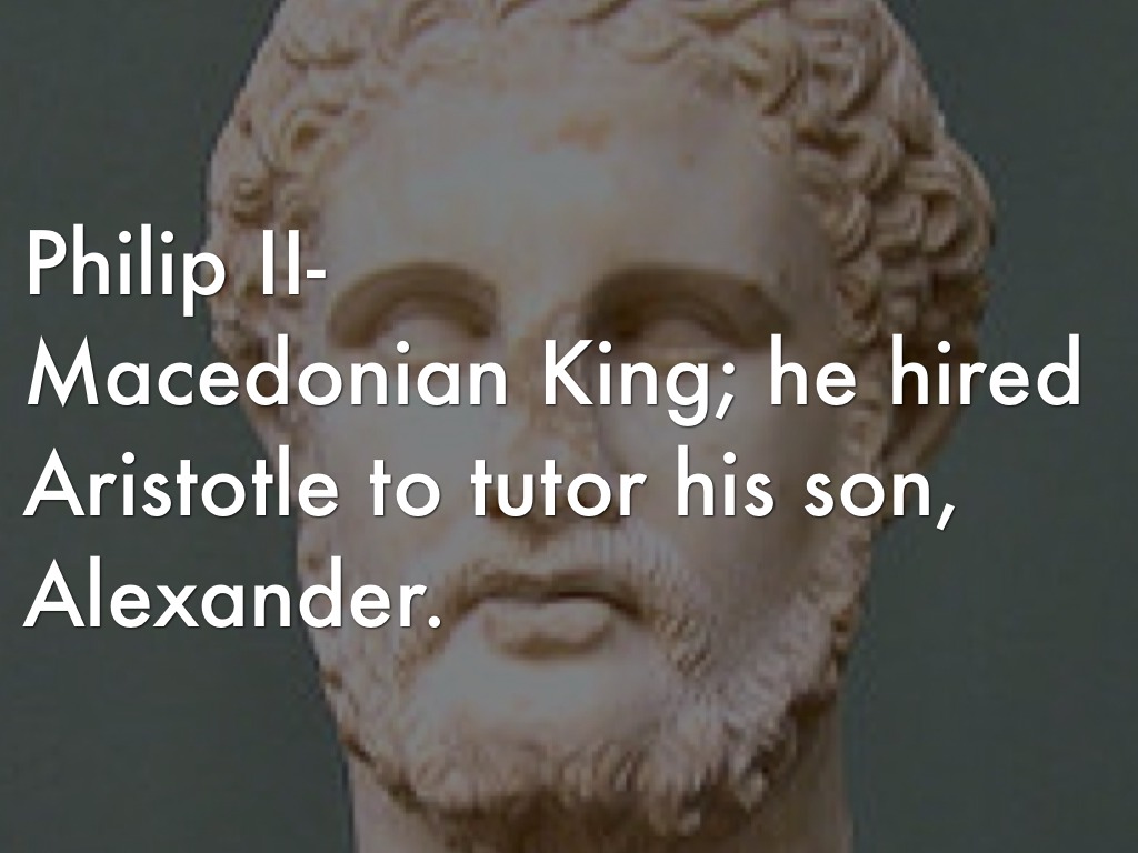 Macedonian King; he hired Aristotle to tutor his son, Alexander.