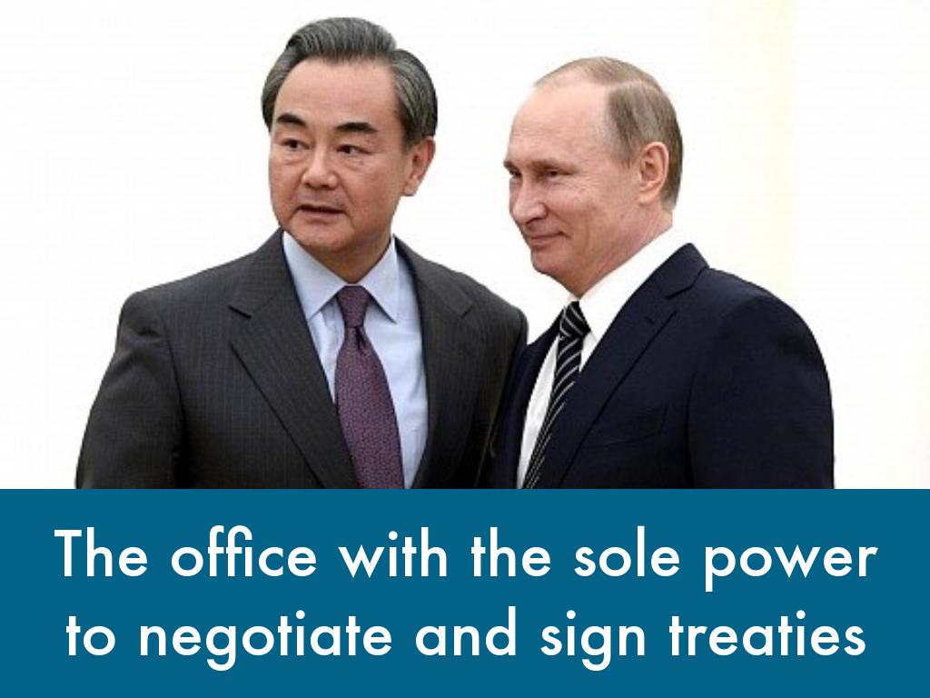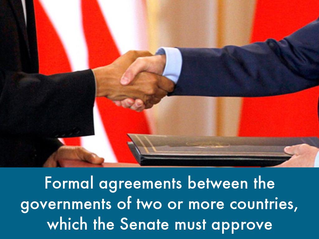 Formal agreements between the governments of two or more countries, which the Senate must approve