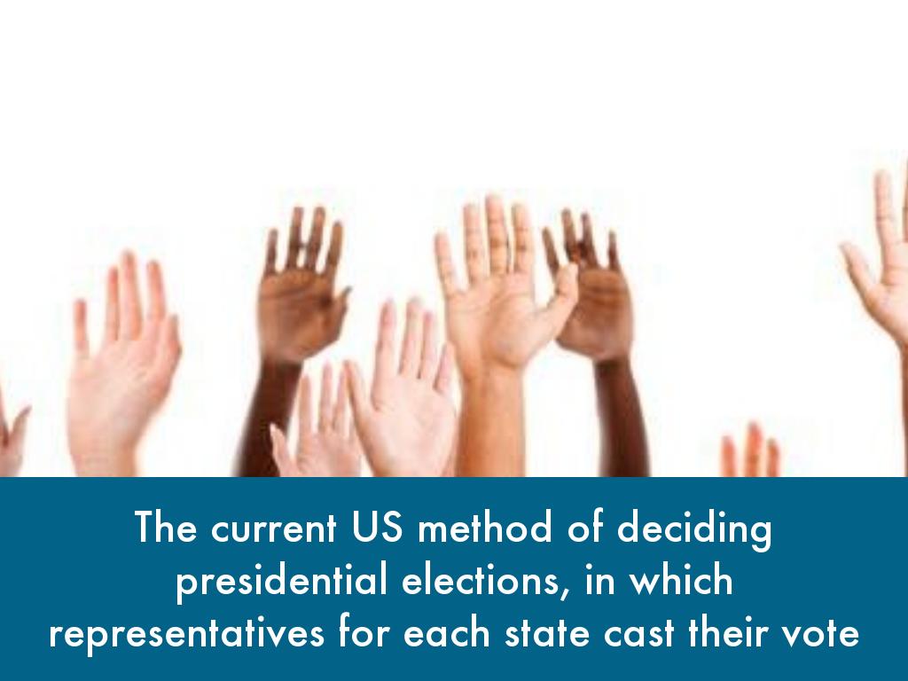 The current US method of deciding presidential elections, in which representatives for each state cast their vote