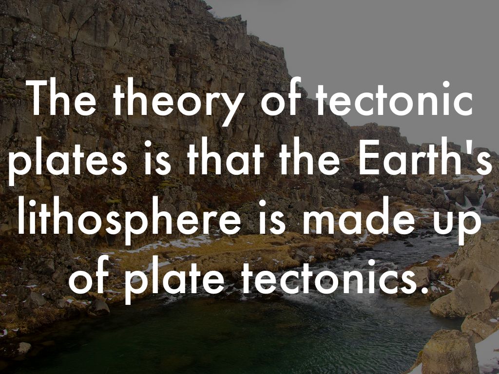 The theory of tectonic plates is that the Earth's lithosphere is made up of plate tectonics.