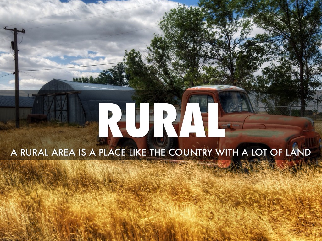 A RURAL AREA IS A PLACE LIKE THE COUNTRY WITH A LOT OF LAND