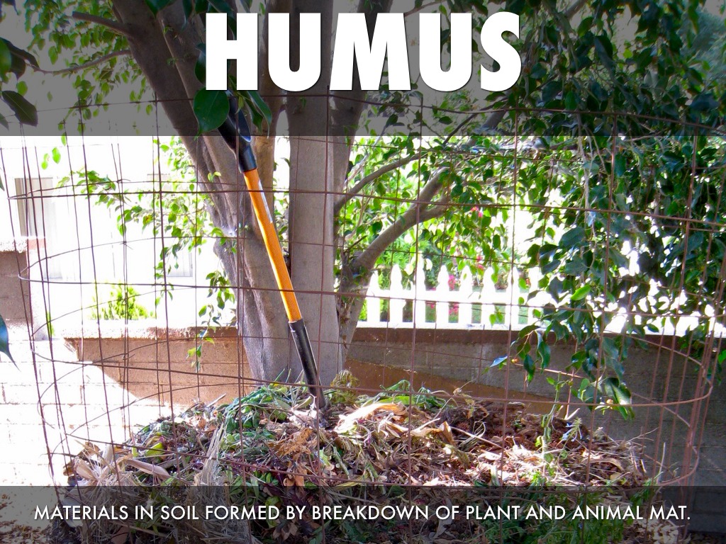 MATERIALS IN SOIL FORMED BY BREAKDOWN OF PLANT AND ANIMAL MAT.
