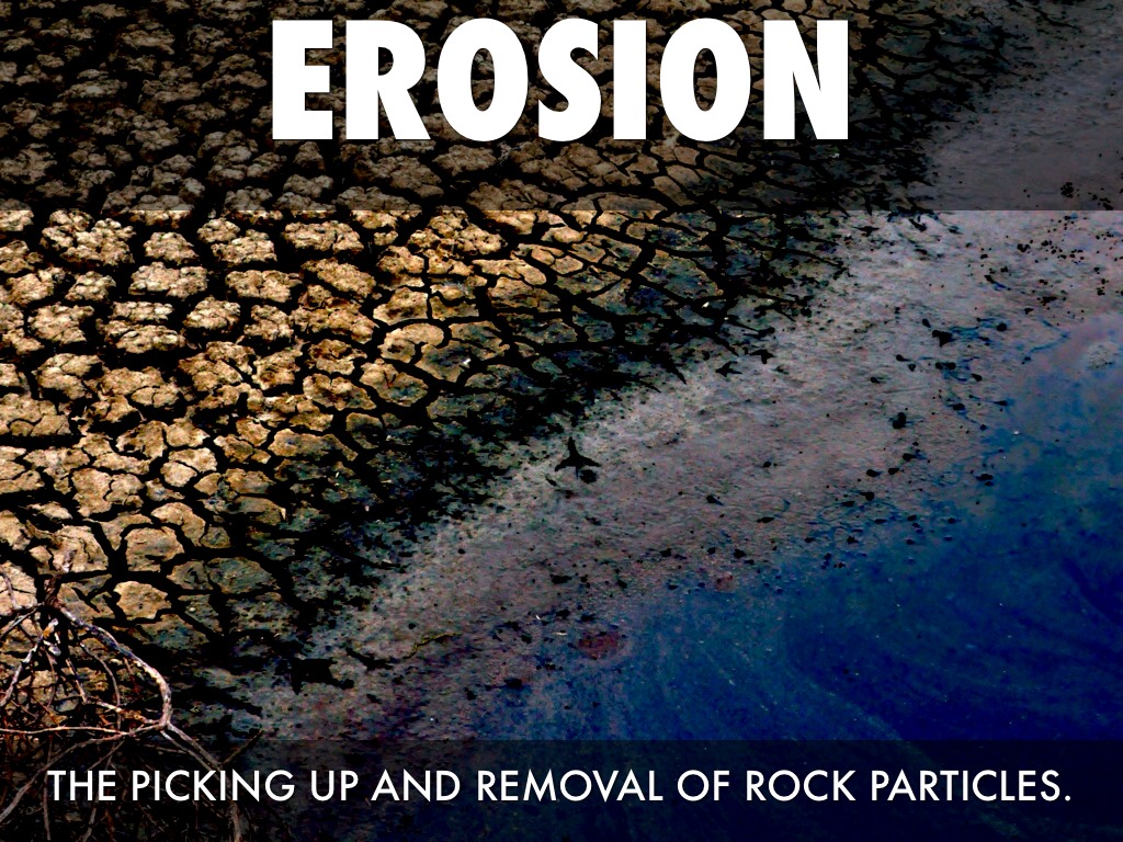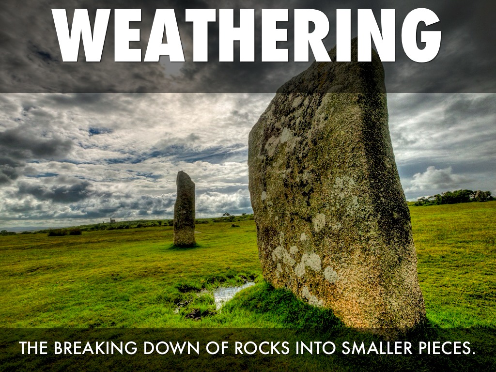 THE BREAKING DOWN OF ROCKS INTO SMALLER PIECES.