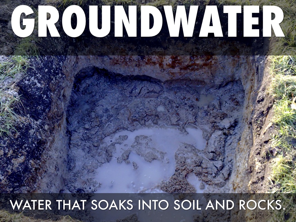 WATER THAT SOAKS INTO SOIL AND ROCKS.
