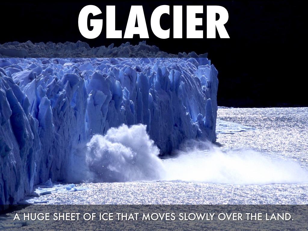 A HUGE SHEET OF ICE THAT MOVES SLOWLY OVER THE LAND.