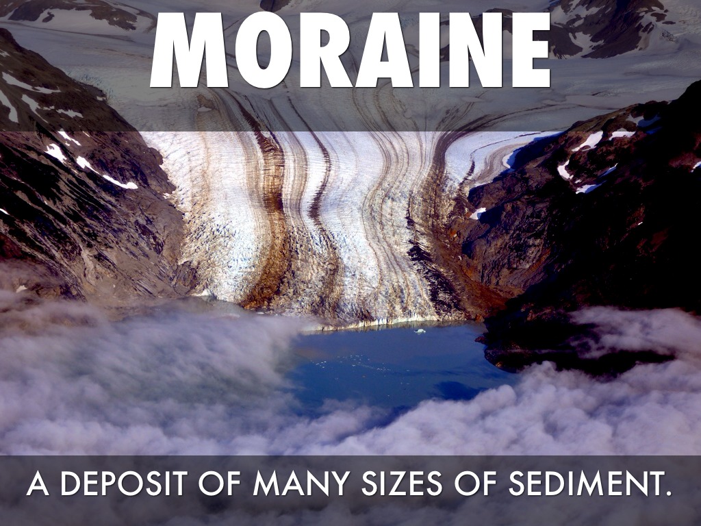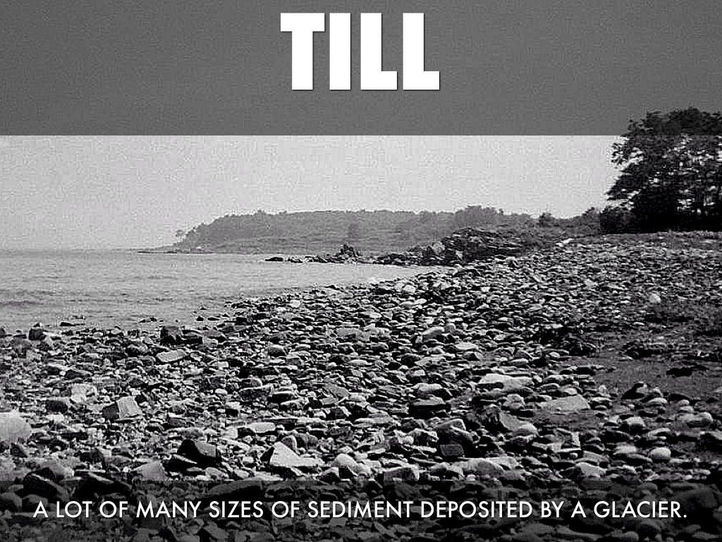A LOT OF MANY SIZES OF SEDIMENT DEPOSITED BY A GLACIER.