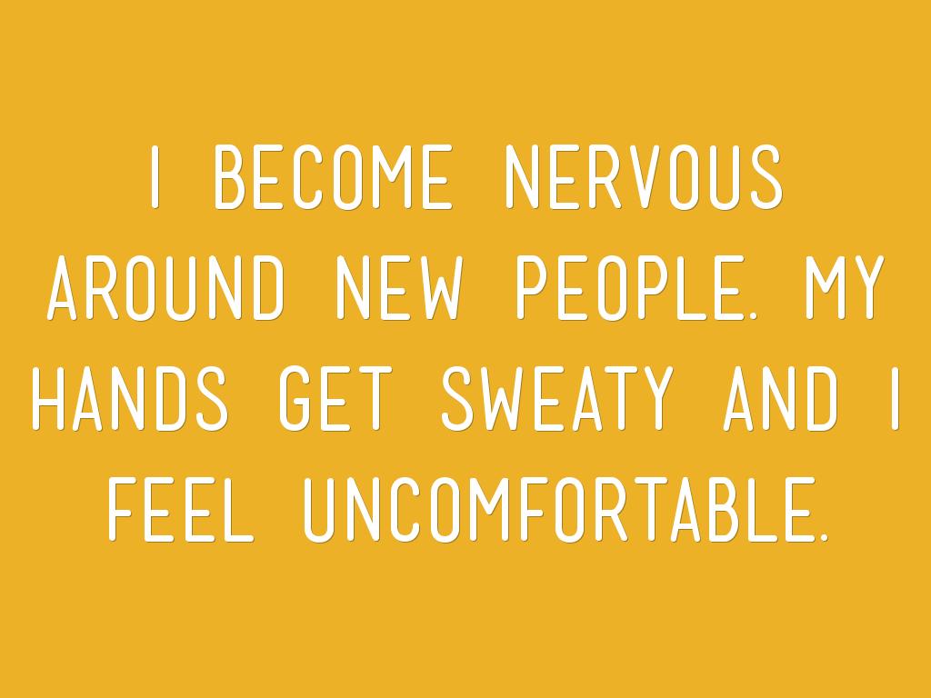 I become nervous around new people. My hands get sweaty and I feel uncomfortable.