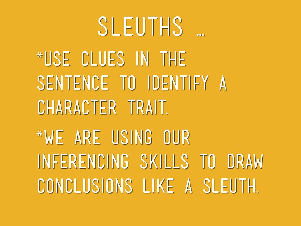 - *We are using our inferencing skills to draw conclusions like a sleuth.