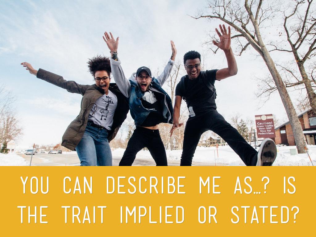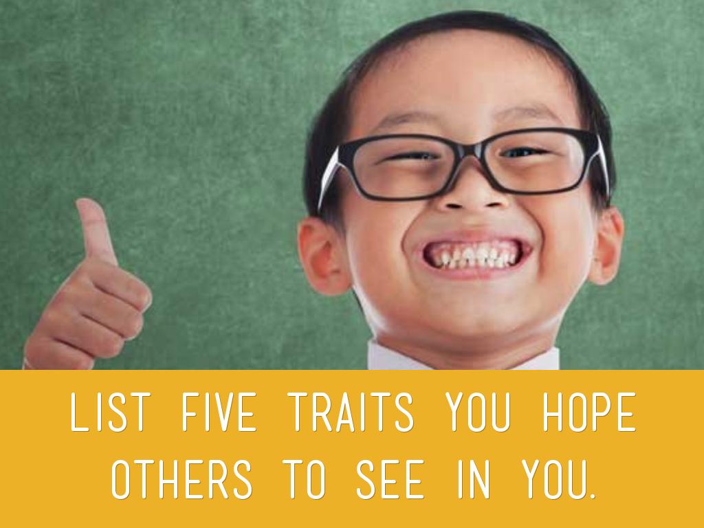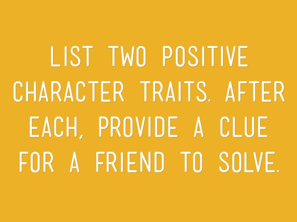 List two positive character traits. After each, provide a Clue for a friend to solve.