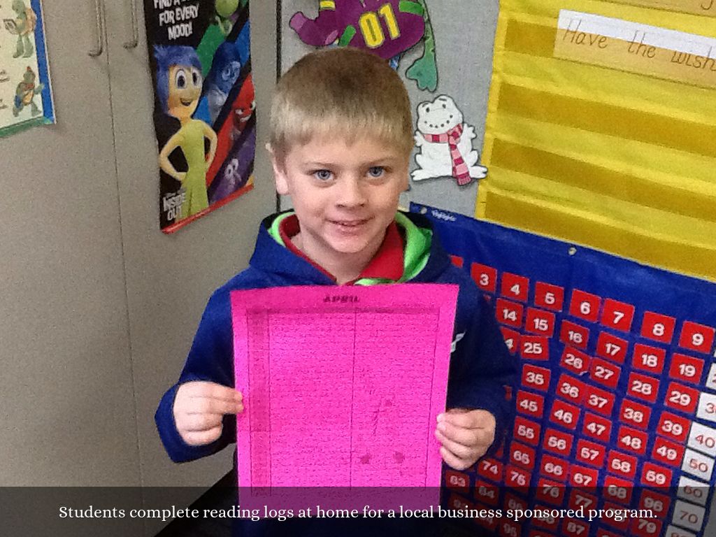 Students complete reading logs at home for a local business sponsored program.