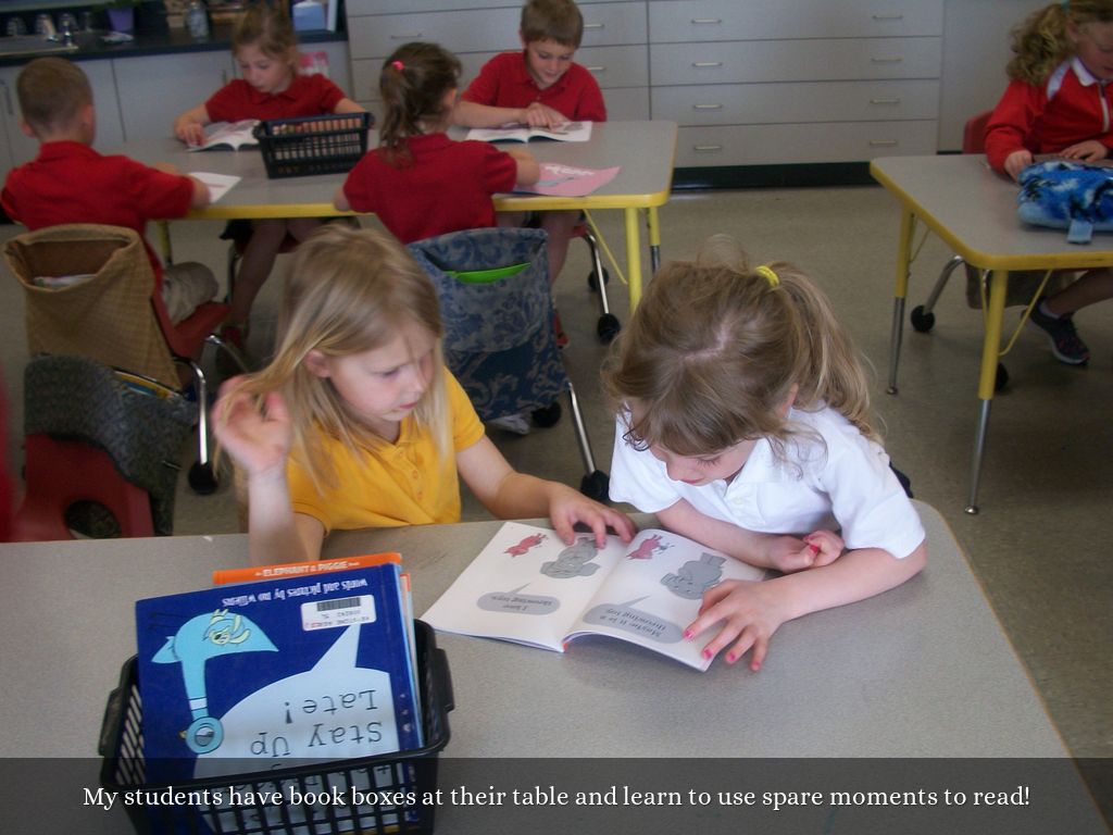 My students have book boxes at their table and learn to use spare moments to read!