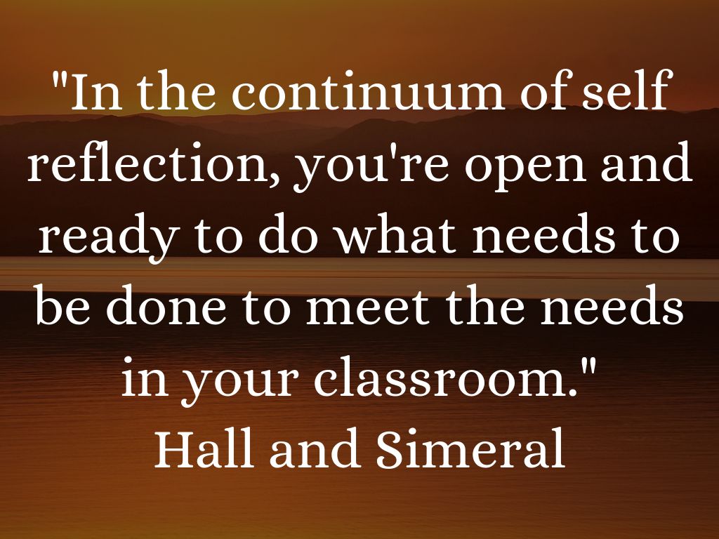 "In the continuum of self reflection, you're open and ready to do what needs to be done to meet the needs in your classroom."