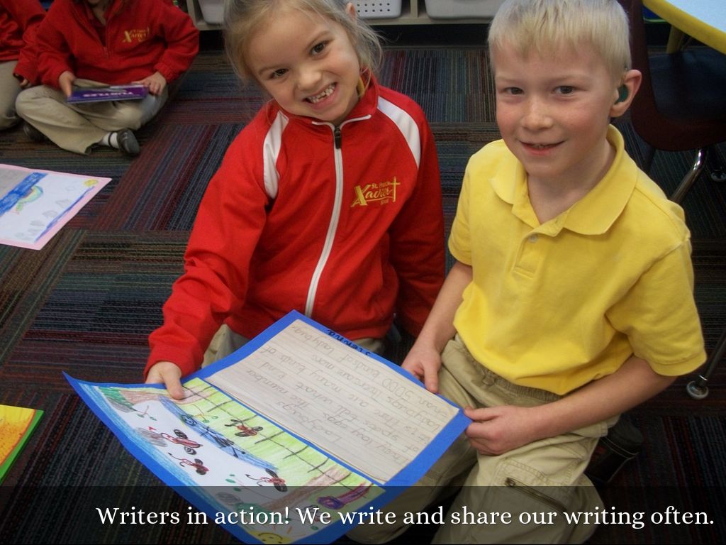 Writers in action! We write and share our writing often.