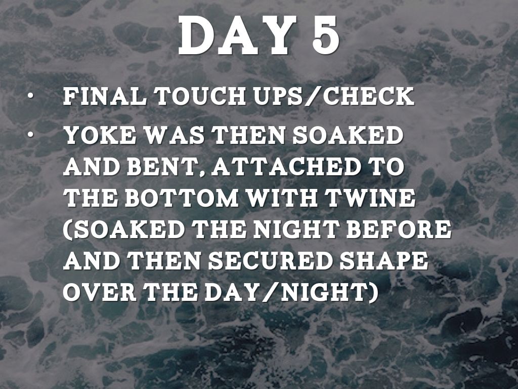 Yoke was then soaked and bent, attached to the bottom with twine (soaked the night before and then secured shape over the day/night)