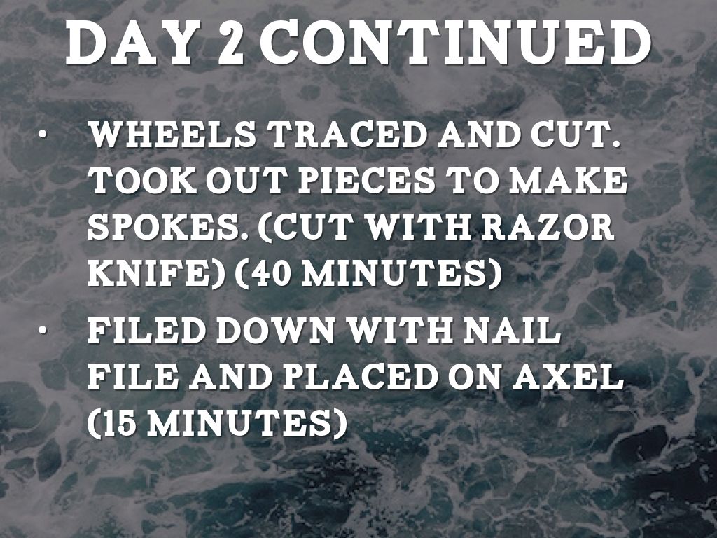 Filed down with nail file and placed on axel (15 minutes)