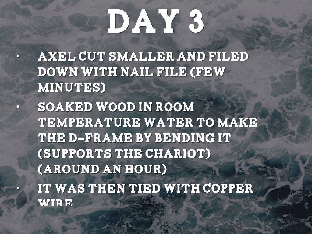Soaked wood in room temperature water to make the D-Frame by bending it (supports the chariot) (around an hour)