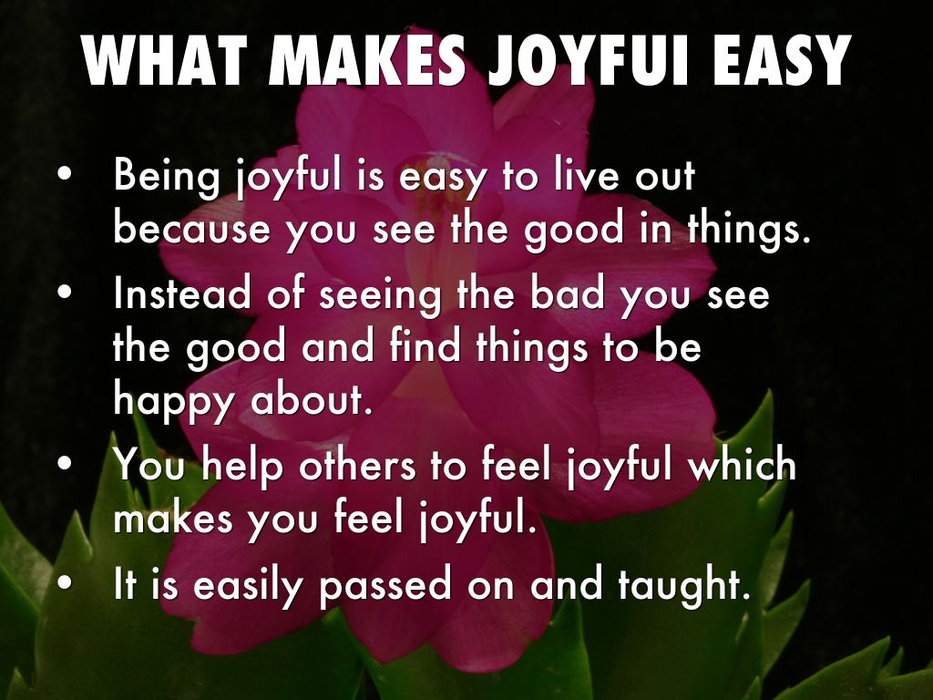 • Instead of seeing the bad you see the good and find things to be happy about.