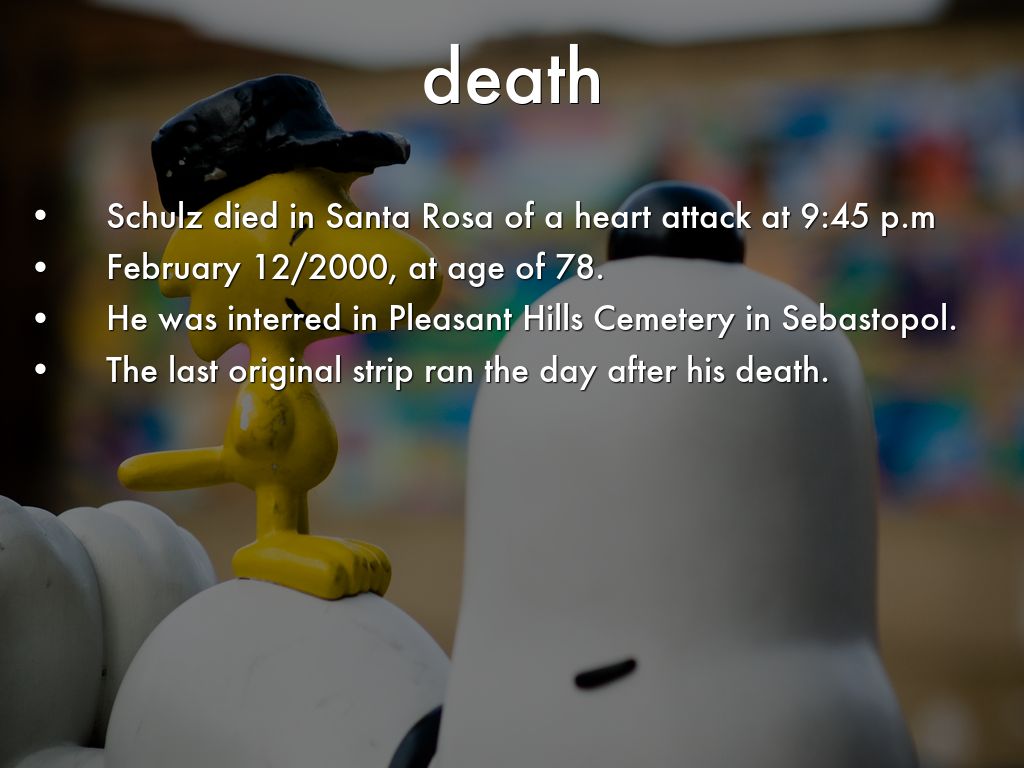Schulz died in Santa Rosa of a heart attack at 9:45 p.m