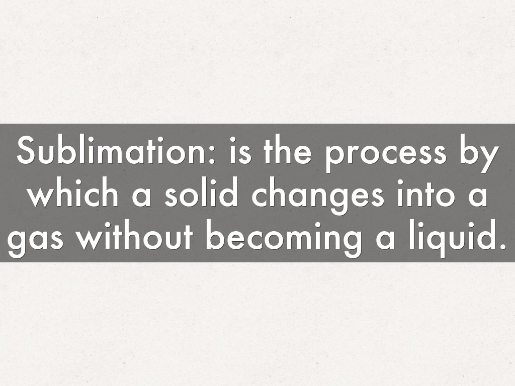 Sublimation: is the process by which a solid changes into a gas without becoming a liquid.