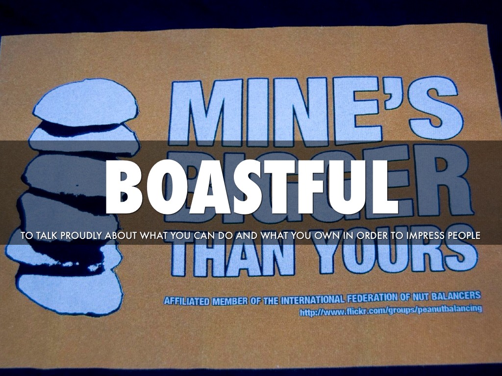 TO TALK PROUDLY ABOUT WHAT YOU CAN DO AND WHAT YOU OWN IN ORDER TO IMPRESS PEOPLE