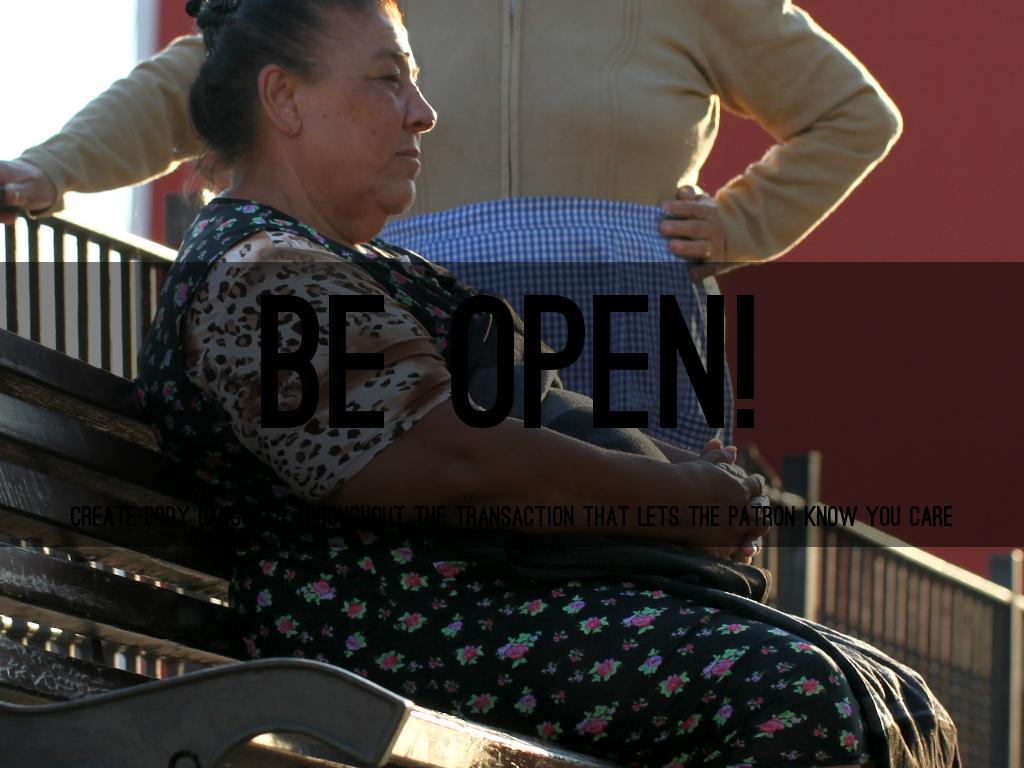 CREATE BODY LANGUAGE THROUGHOUT THE TRANSACTION THAT LETS THE PATRON KNOW YOU CARE