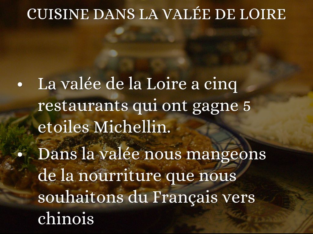 La valée de la Loire a cinq restaurants qui ont gagne 5 etoiles Michellin.
