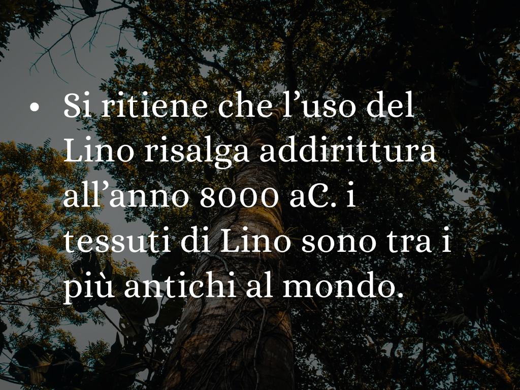 • Si ritiene che l’uso del Lino risalga addirittura all’anno 8000 aC. i tessuti di Lino sono tra i più antichi al mondo.