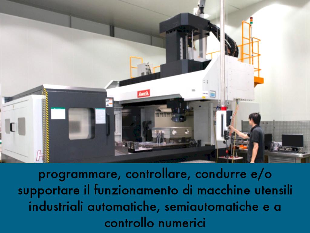 programmare, controllare, condurre e/o supportare il funzionamento di macchine utensili industriali automatiche, semiautomatiche e a controllo numerici