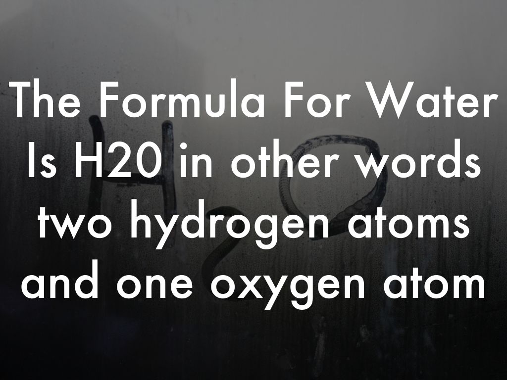 The Formula For Water Is H20 in other words two hydrogen atoms and one oxygen atom