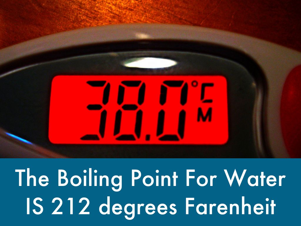 The Boiling Point For Water IS 212 degrees Farenheit