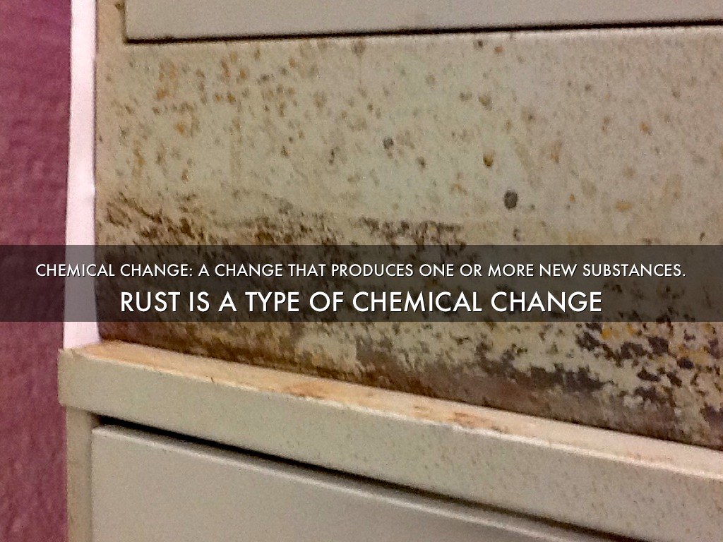 CHEMICAL CHANGE: A CHANGE THAT PRODUCES ONE OR MORE NEW SUBSTANCES.