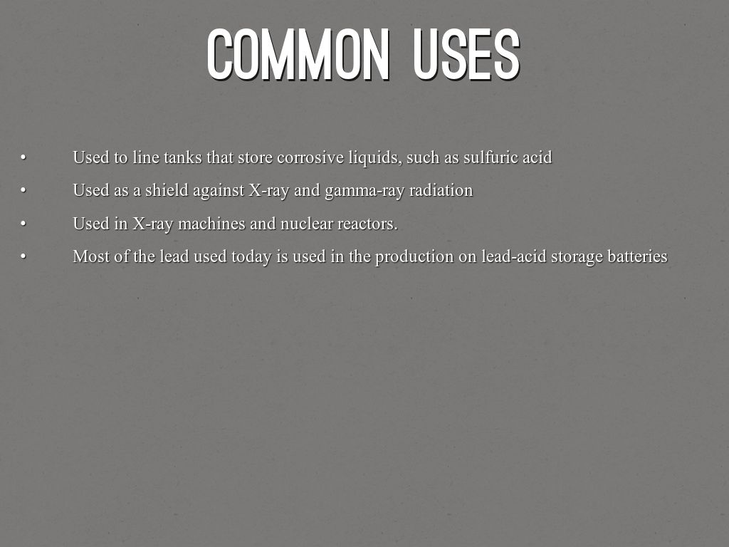 Most of the lead used today is used in the production on lead-acid storage batteries