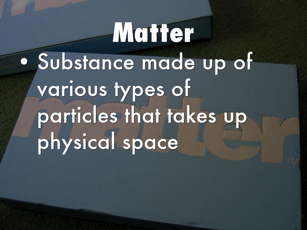 • Substance made up of various types of particles that takes up physical space
