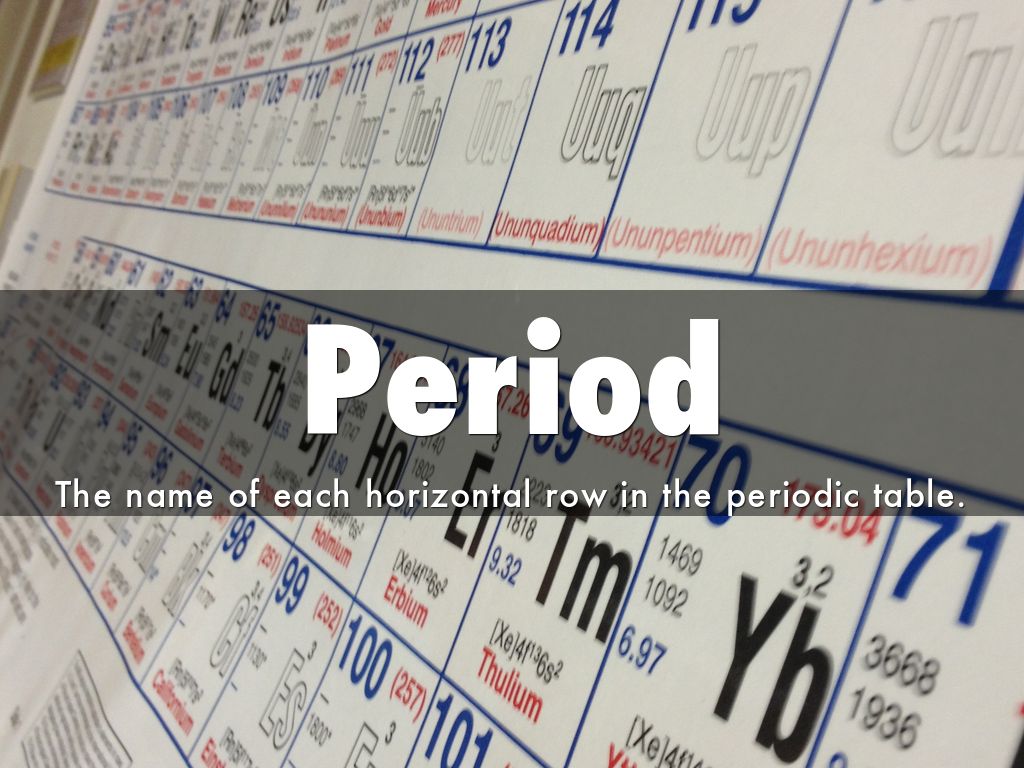 The name of each horizontal row in the periodic table.