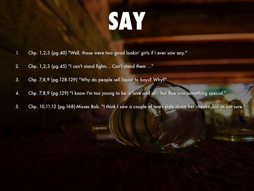 Chp. 7,8,9 (pg.128-129) "Why do people sell liquor to boys? Why?"