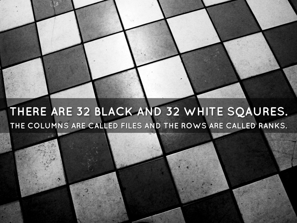 THERE ARE 32 BLACK AND 32 WHITE SQAURES.